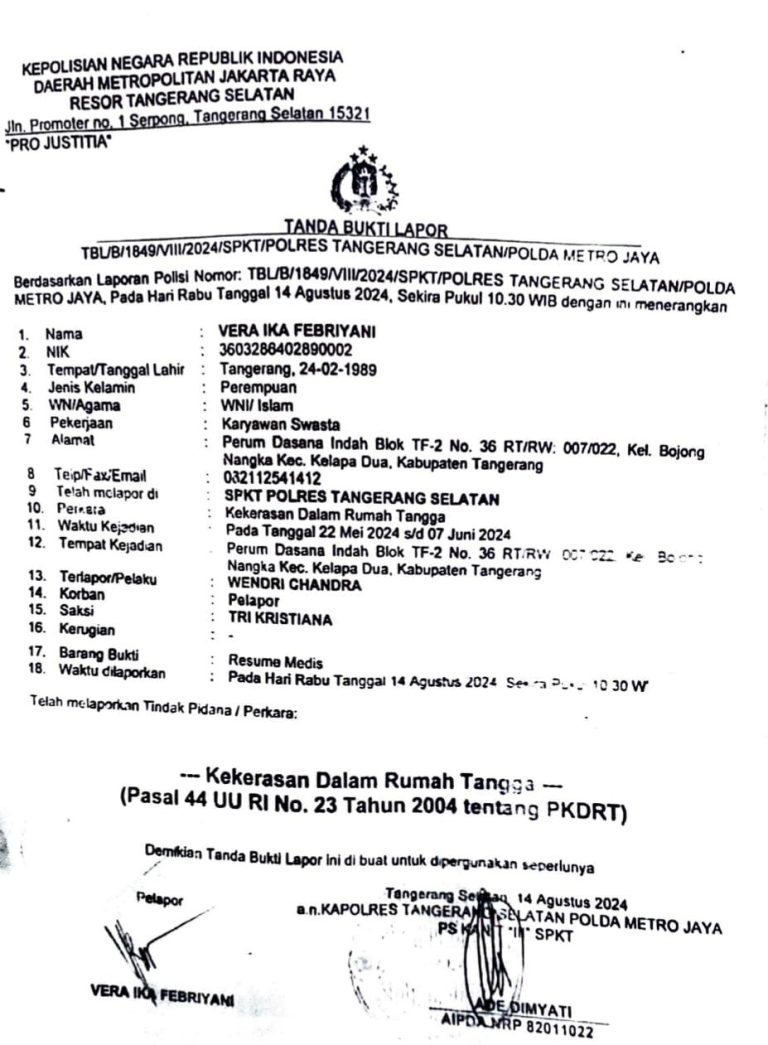 PERKARA KDRT MANDEK SEJAK TAHUN 2024, KUASA HUKUM KORBAN SOROTI KINERJA UNIT PPA POLRES TANGERANG SELATAN