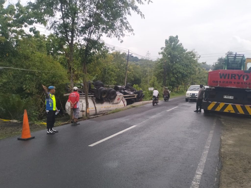 Truk tangki Pertamina milik PT Dwiparama Hasta Mukti dengan nomor polisi AE-8069-UX dilaporkan mengalami kecelakaan sekitar pukul 19.00 WIB. Kendaraan diketahui melaju dari arah Nguntoronadi menuju Tirtomoyo sebelum akhirnya keluar dari badan jalan.