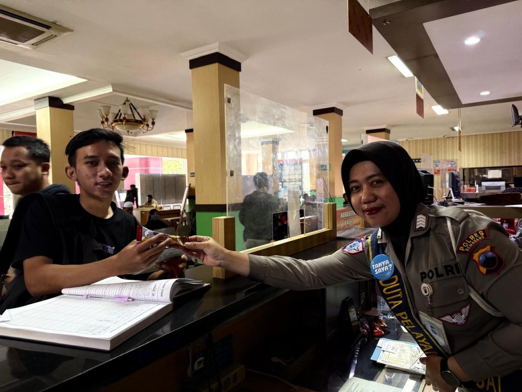 Reward cokelat diberikan secara langsung oleh petugas Samsat kepada wajib pajak usai menyelesaikan proses pembayaran pajak kendaraan. Selain sebagai bentuk penghargaan, petugas juga menyampaikan ucapan terima kasih serta imbauan agar masyarakat terus menjaga kepatuhan dalam memenuhi kewajiban pajak kendaraan bermotor.