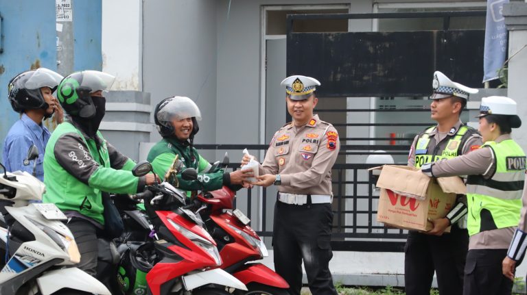 Sat Lantas Polres Wonogiri Bagi 250 Takjil di Simpang Ponten, Sambil Edukasi Tertib Lalu Lintas