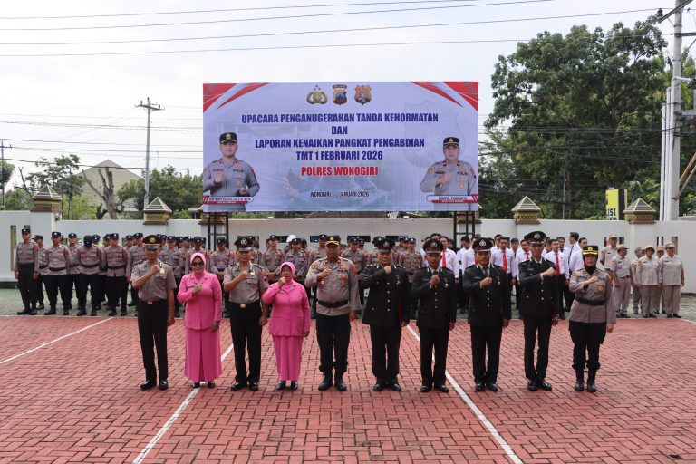 Polres Wonogiri Gelar Upacara Penganugerahan Tanda Kehormatan dan Kenaikan Pangkat Pengabdian